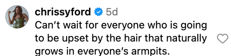 Fortunately, several also stood up for Corrin, with many noting that those commenting about "hygiene" likely wouldn't say the same if men with armpit hair were featured on the cover.
