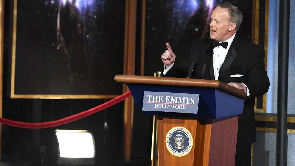 Perhaps the most contentious moment during Colbert's opening monologue came when Sean Spicer, the former White House Press Secretary, made a surprise appearance to comment on crowd size. "This will be the largest audience to witness an Emmys, period. Both in person and around the world," Spicer said.