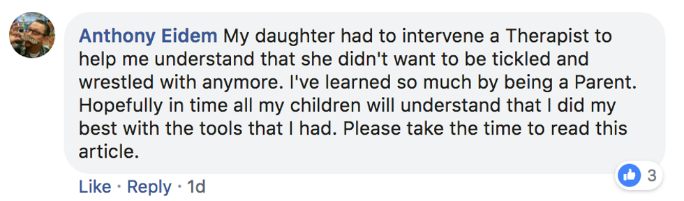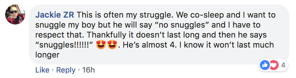 "And in that moment, I had to stop and realise that I had created something marvellous. A 2 year old who felt safe enough to impose his own limits on touch and affection, with a parent. A 2 year old who was exercising his first rights to consent over his body.