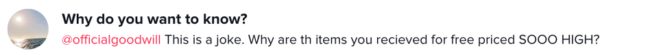 "To tell you I was crying and almost peeing my pants of laughter from this would be an understatement. Goodwill, you really got me on that one!”