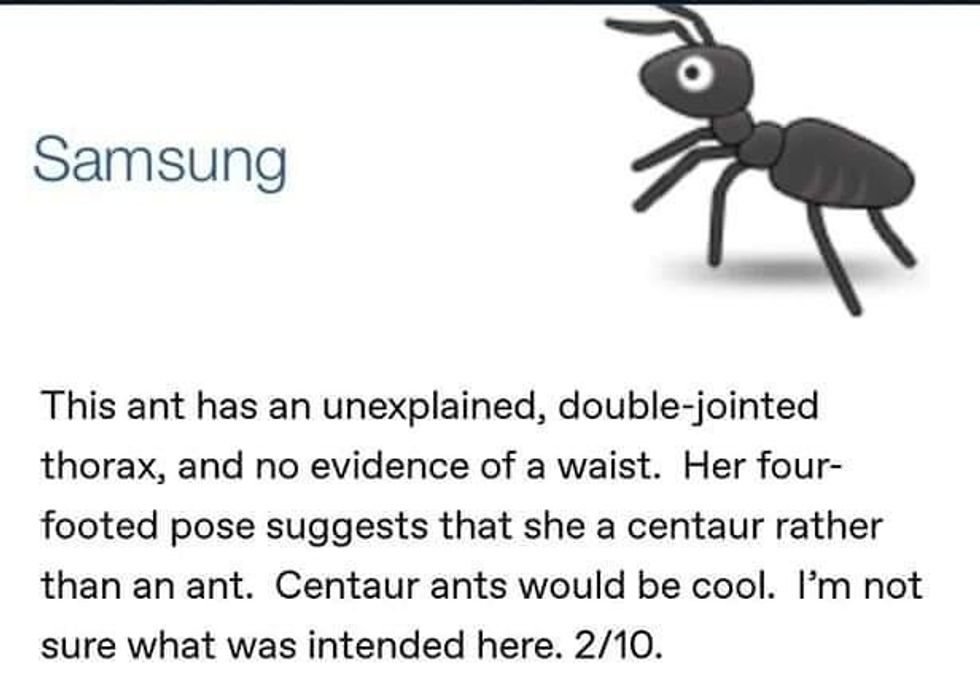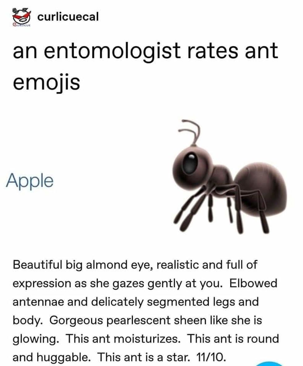 People are giggling after an entomologist took the various ant emoji from iPhone, Samsung, etc... and reviewed them in a completely unscientific manner.