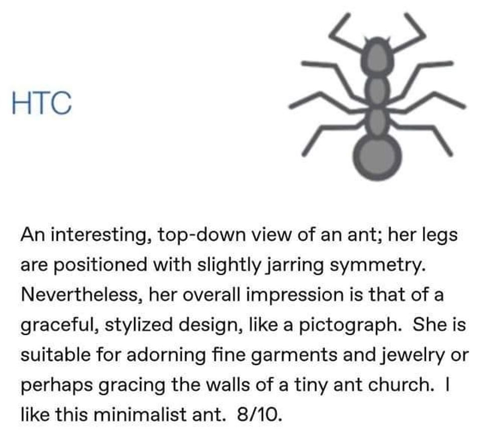 EmojiOne produced a "not an ant" reminiscent of a Hork-Bajir* earning them a 1/10.