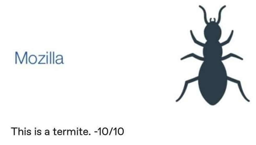 And Mozilla was so rage inducing they went into negative numbers for their termite impersonating an ant.