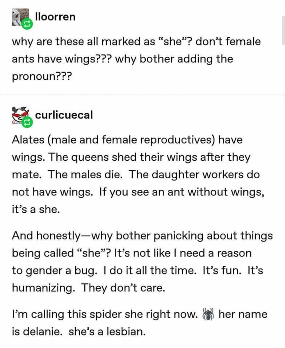 Each ant has a different style, a different life or a different story. But they're all female.