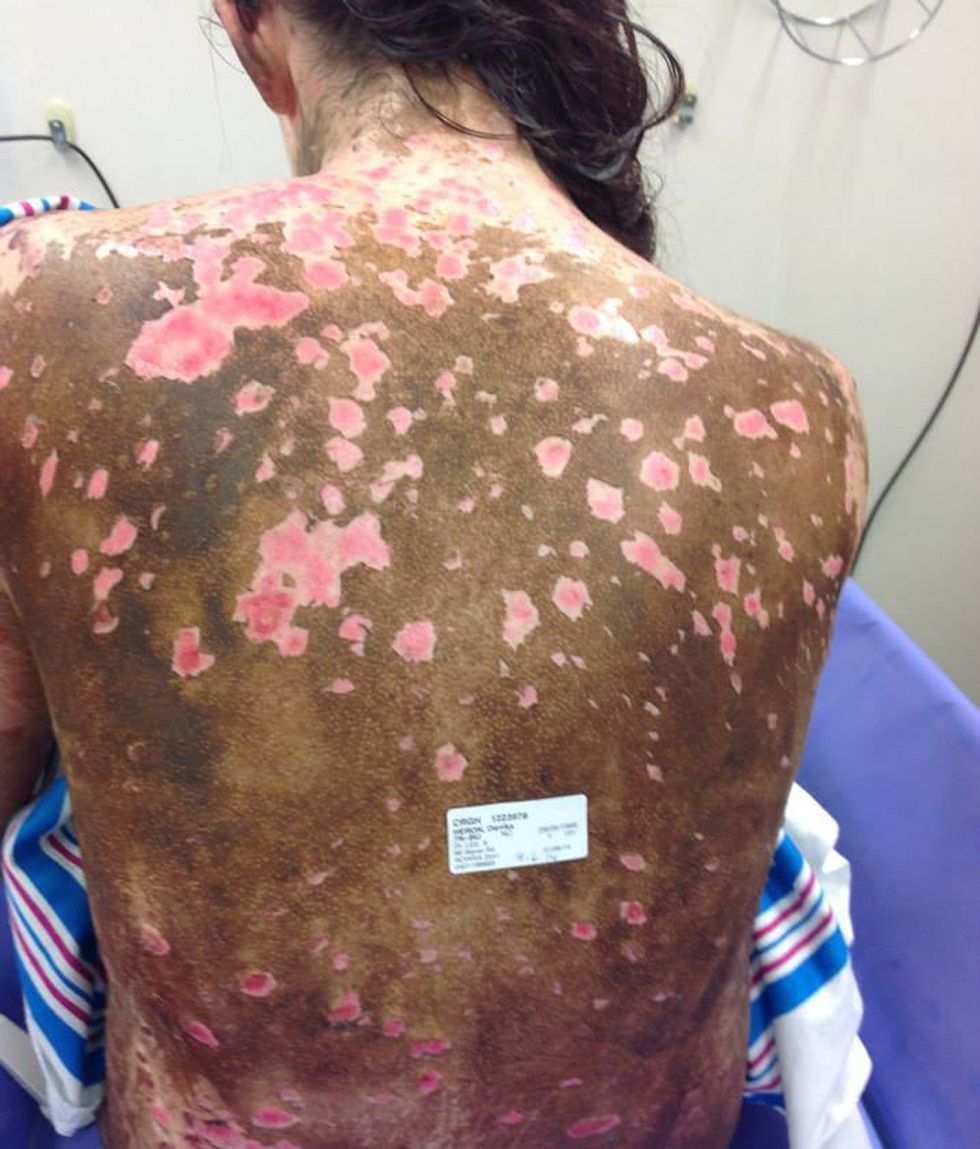 But thankfully, by complete chance, she was eventually seen by a doctor who knew a lot about the condition, and so spotted it right away, officially diagnosing her with a severe form of SJS known as toxic epidermal necrolysis (TEN).