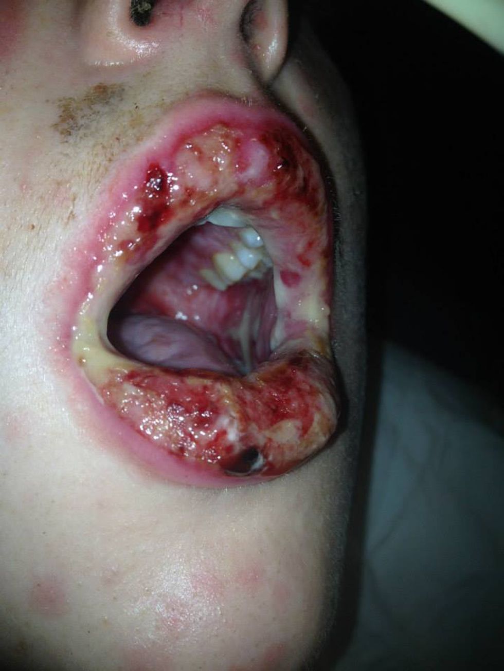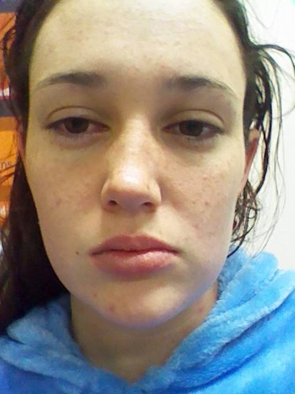 Her lips also swelled to the point where they burst and her mouth became covered in painful ulcers.