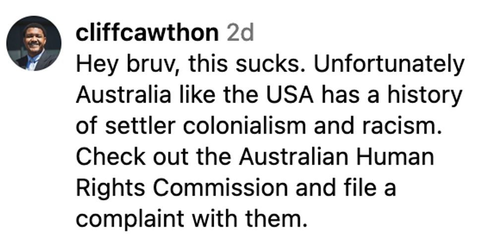 Andre also asked social media users to provide him with information if they knew the names of the agents involved in the detection dogs department at the location, as well as any Australian attorneys specializing in racial discrimination cases he could reach out to.
