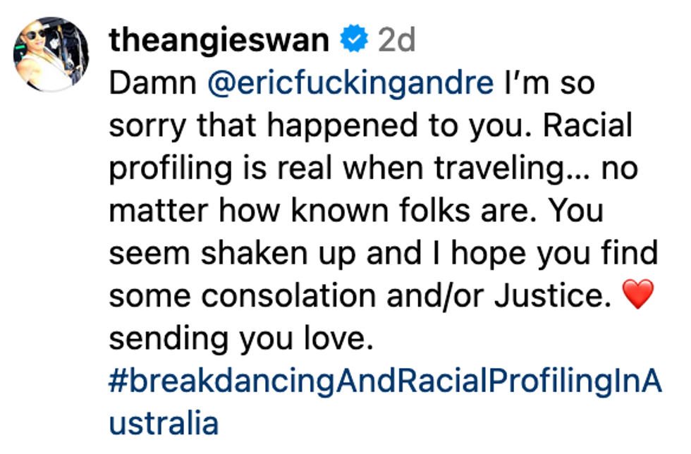 “It’s like one of the many times I’ve been racially profiled at the airport,” Andre said on an Instagram post, adding: