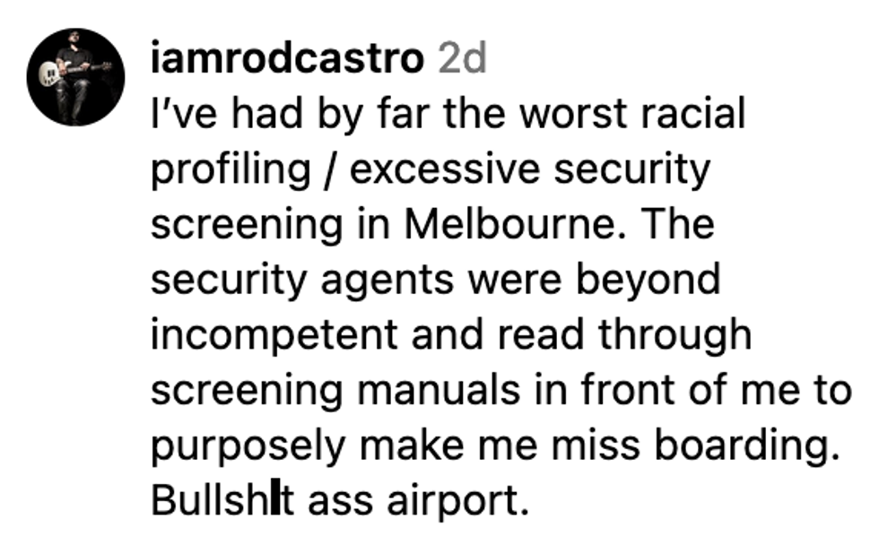 Andre warned fellow non-White travelers through Melbourne to be aware of racial profiling scenarios, especially at Melbourne Airport Terminal 2 which services Qantas Airlines.