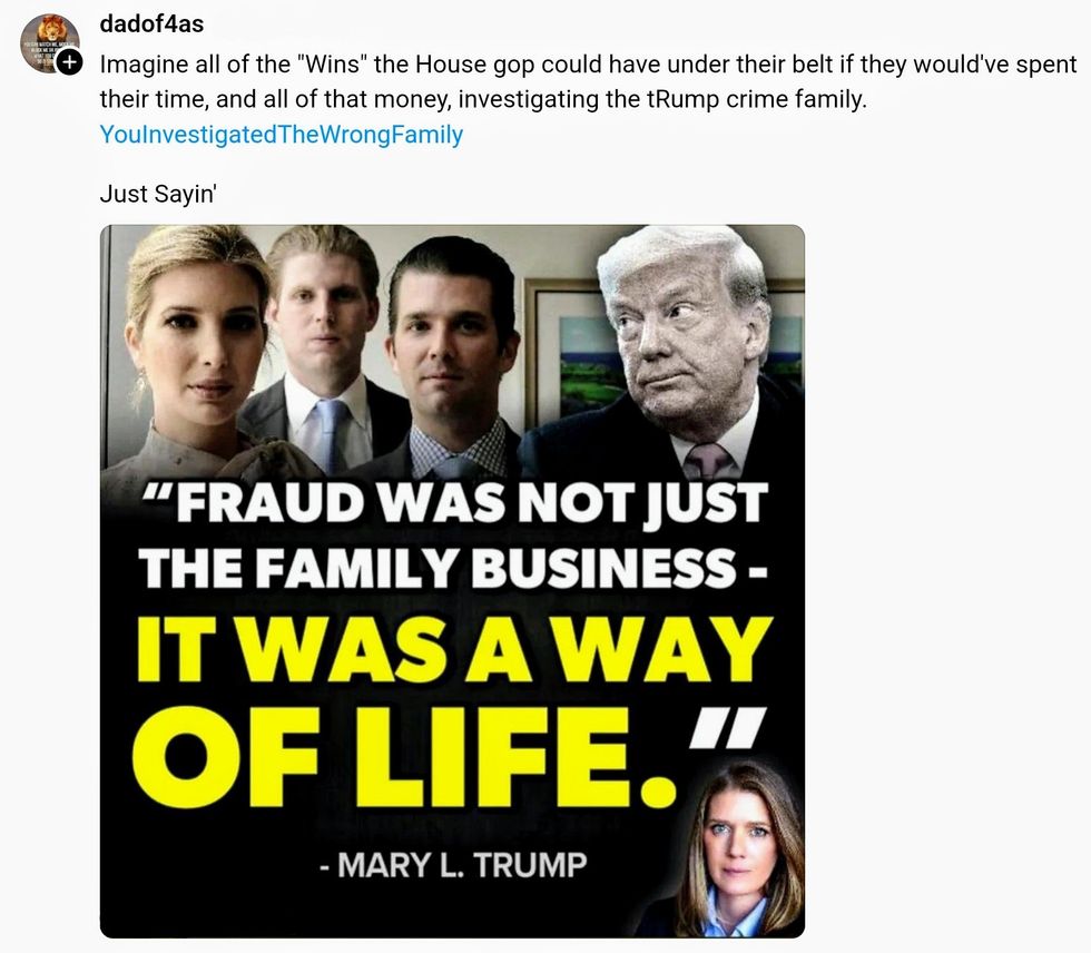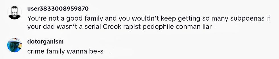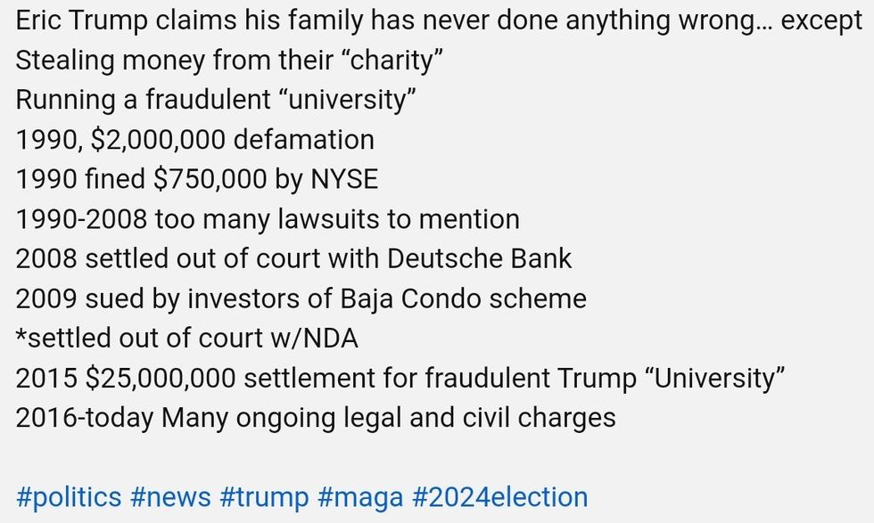 On both Threads and TikTok, people found Eric Trump’s claim about his family's virtue laughable.