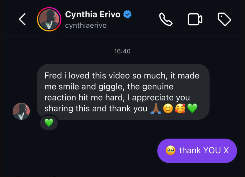 Erivo, who plays Elphaba, a.k.a. the Wicked Witch of the West, eventually saw the video and commented on his reaction.
