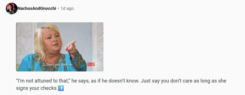 GiphyYeah, that's the thing- reality tends to be a different from what people tend to imagine. As someone who has actually done it for four years, I can say with absolute certainty that the client's look don't matter one bit. I'm not there to "enjoy." I am not having sex as in enjoying intimacy. I am giving sex as someone who isn't me, concentrating 100% on the client and being on my guard all the time. What I care about is making money, as quickly and easily as possibly and keeping myself safe. If by "kind" you mean someone who respect me and my boundaries and acts like he should, that matters.