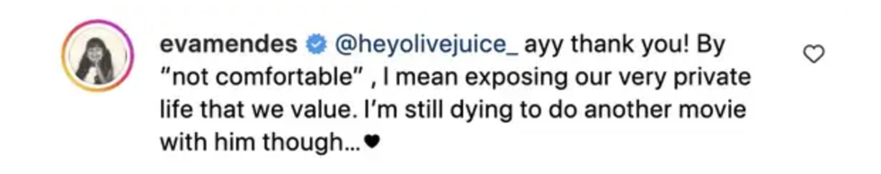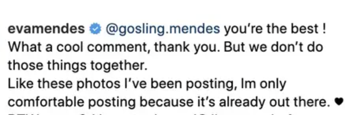 Mendes made it clear in a comment that "we don't do these things together", and the only pictures of Gosling she tends to post on social media are pictures that have "already been out there".
