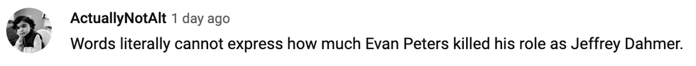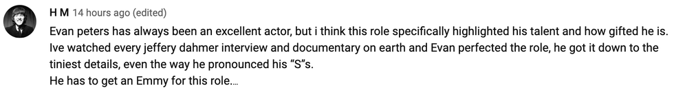 Viewers of the interview applauded Peters absolutely bone-chilling portrayal of Dahmer.