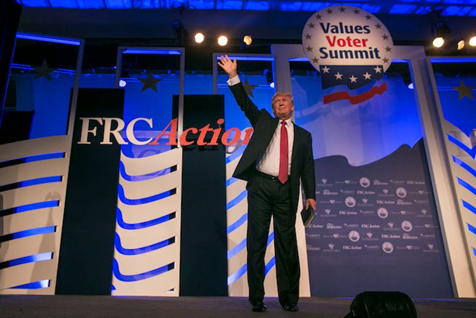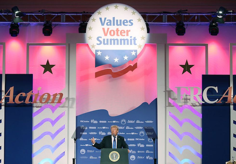 According to NPR, Trump is the first sitting president to speak at the summit, which is held annually by the Family Research Council, which the Southern Poverty Law Center designated a hate group, and which is known for their anti-LGBT views.