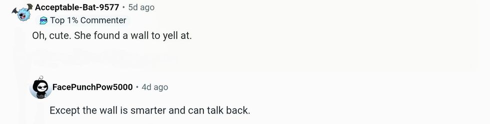 "Excuse me?" I said "Wasn't talking to you." Said in the most snotty a-- voice ever.