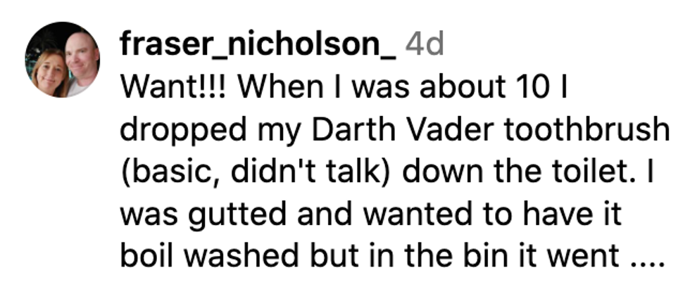 Many people were excited to remember their own Obi-Wan lightsaber toothbrushes.