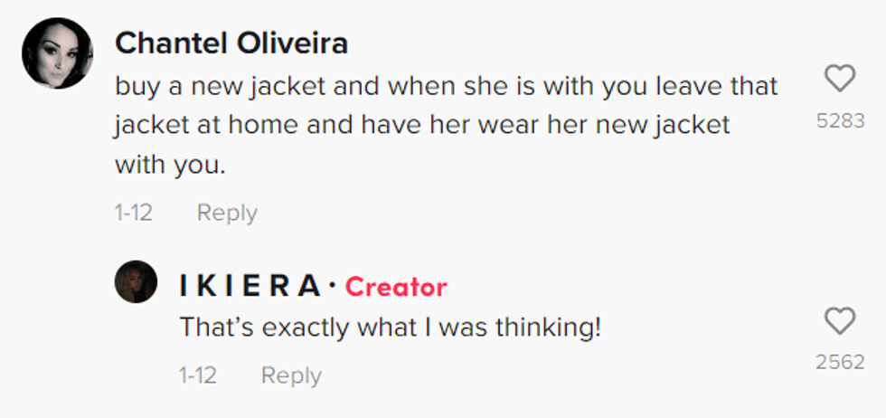 Ikiera then showed her daughter's light pink coat that had a cut in the seam, stating that her ex had "tried to glue it back together" after hiding the AirTag inside the sleeve's layers.