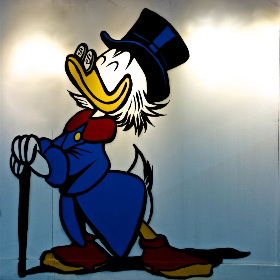File:"Uncle Patinhas" "StreetArt it seems that we have business ...commons.wikimedia.orgScrooge McDuck was named by Forbes as the richest fictional character in the world. They estimate his personal net worth to be $65.4 billion. They said he made his money in mining and treasure hunting, and that he kept most of his wealth, of course, in his gold coin swimming pool.