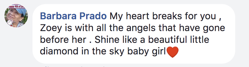 Their final moment together was captured in a heartbreaking photo and shared on Zoey's Facebook page, "Zoeys Light." Her parents created the page to update followers on her progress while fighting her illness.