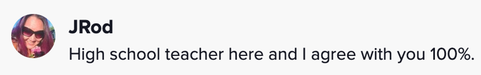 "Everyone deserves the benefit of this type of education," she continued while observing the stitched clip posted by @sanilareana.