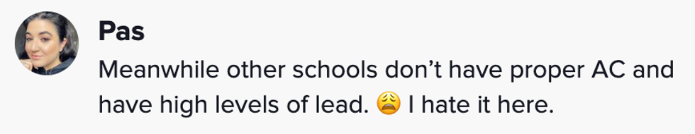 TikToker @saniarena posted a duet video stitched with Carmel High's clip to demonstrate the disparity between American high schools in wealthy areas compared to those in the rest of the country.