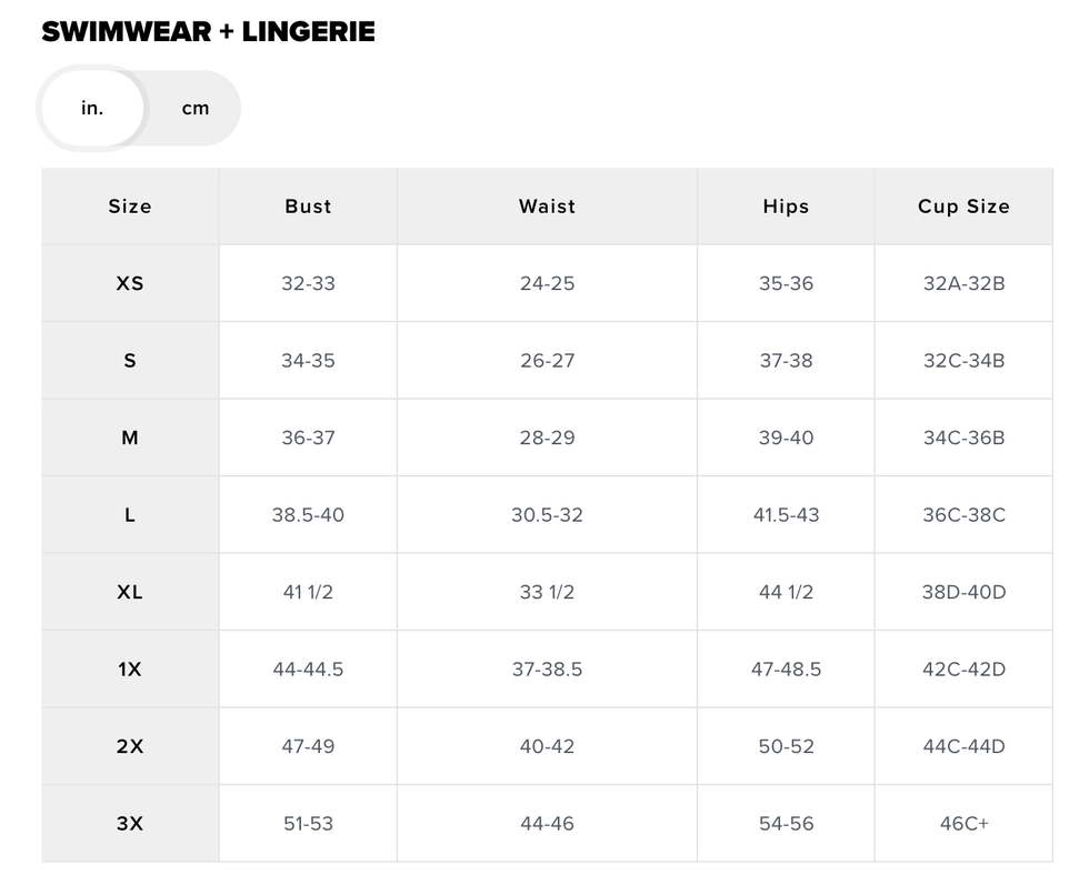 According to Fashion Nova's swimwear + lingerie size guide, the XS to XL size range was the equivalent of 32A to 40D, which does not constitute a plus size.