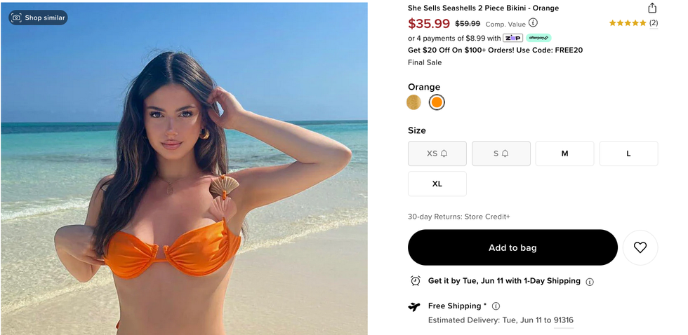 Buzzfeed noted that the main image used for the "body positivity" campaign featured the "Aubrie Gems 2 Piece Bikini" ranging from XS to XL.