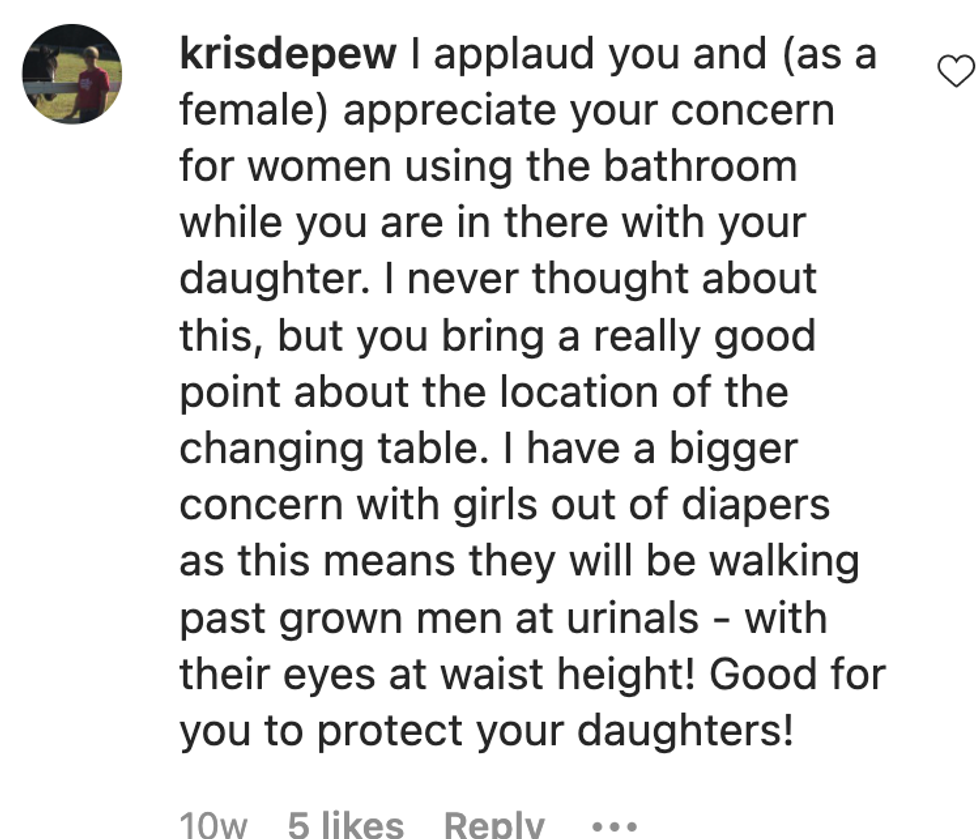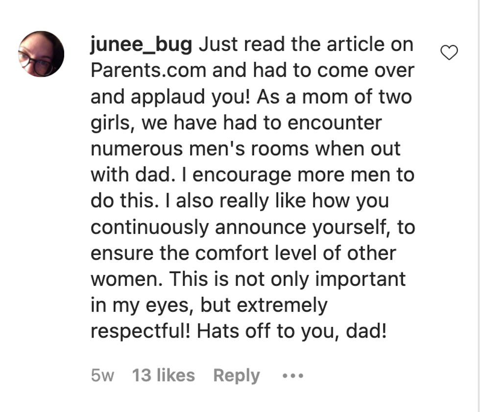 "As a girl dad I can't help but want to protect my daughter's from all things that aren't for them and the men's bathroom is 100% one of those things."