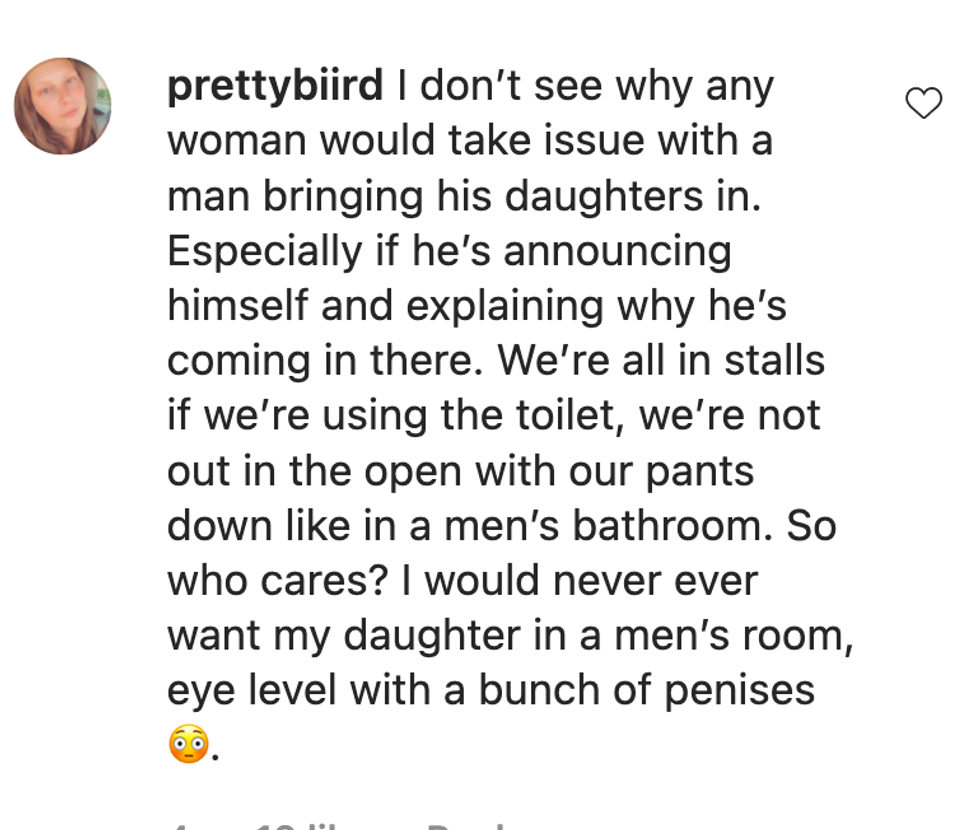 There were even a few who expressed his decision to take his daughters into the women's room shouldn't bother anyone.