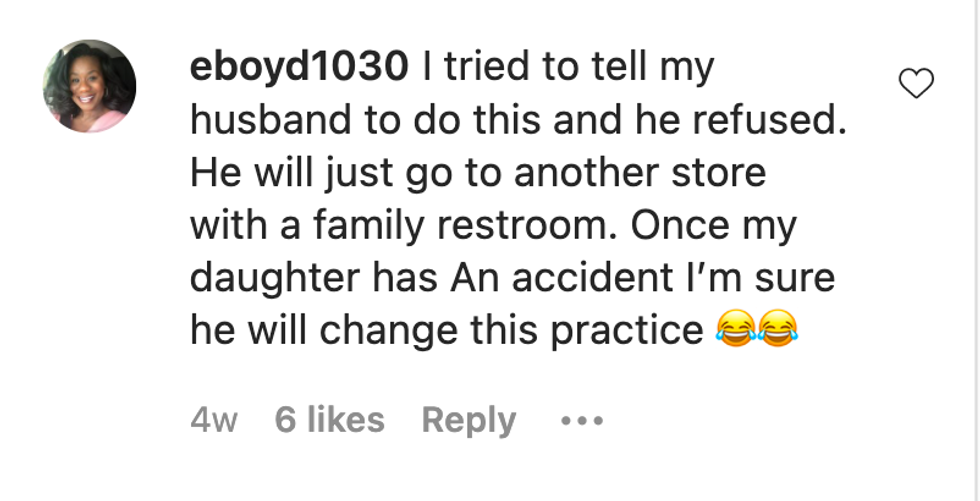 "After doing that one time I decided I'd never take my daughter's to the men's bathroom again."