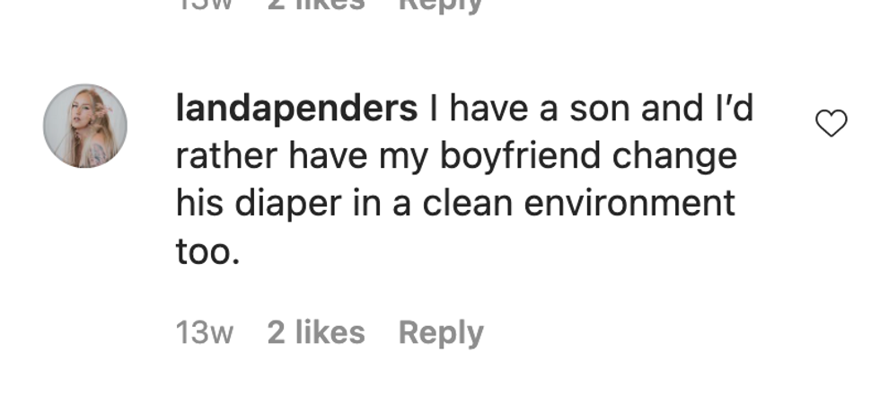"The changing table was right next to the urinal which means my child literally would be next to where men pee while she's being changed."