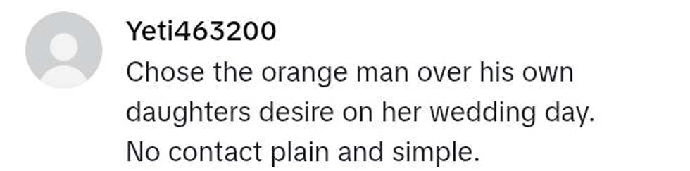 A woman's clip from her wedding video is going viral for her father's decision to put his political beliefs before her happiness on her wedding day. Asked to leave his politics at home for one day, the MAGA minion dad wasn't capable of keeping his promise to his daughter, his love for MAGA Republican President Donald Trump being more important.