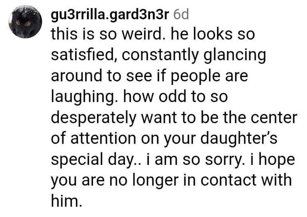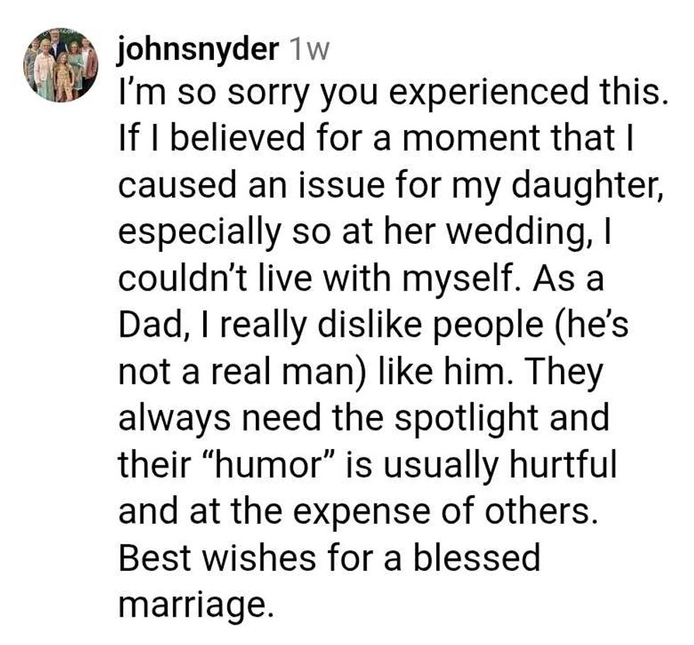 Tagging it a late night find, the wedding is from several years ago, but Courtney Raspor—a stay-at-home mom of three and daycare provider—shares insights on dealing with going no contact with a narcissistic parent in her content. The wedding reception clip of her father's speech was a glimpse into why they're estranged.