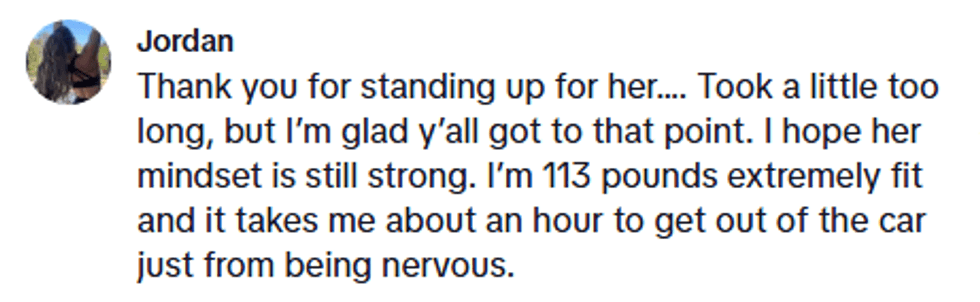 She filmed the man that day and decided to start a TikTok page to call him out. She's since started posting accountability videos of her going to the gym and her various weight-lifting routines, nearly 100 days into her journey.