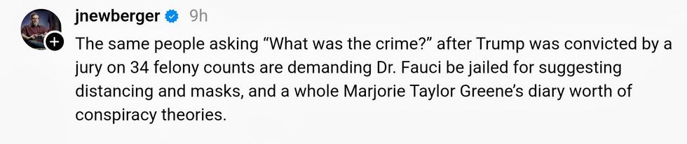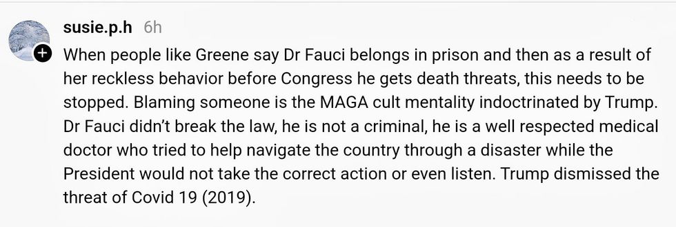 In a Monday night appearance on CNN's The Source, Dr. Fauci said death threats made against him and his family increase each time public figures like Greene spread their COVID-19 conspiracy theories, lies, and misinformation.