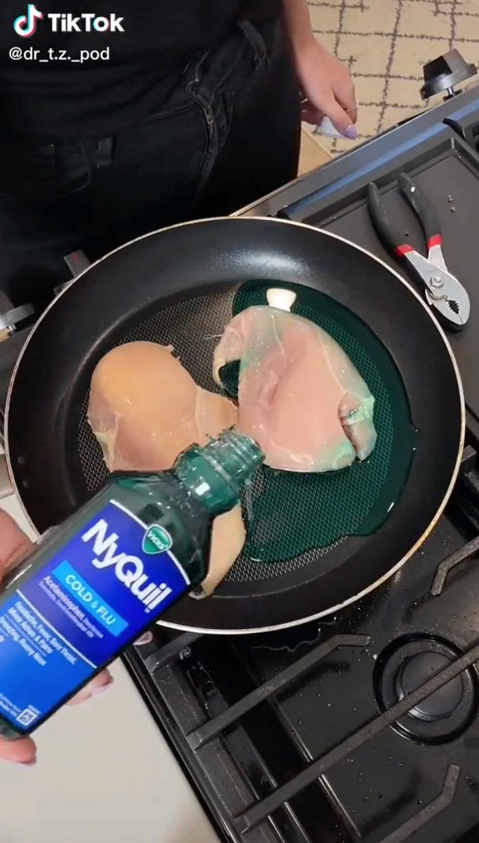 The "NyQuil Chicken challenge" has gone viral since emerging on TikTok and the images are as nauseating as you'd expect.