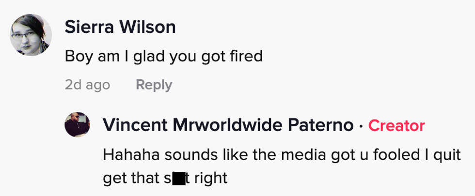 Paterno, who worked for the company in Washington and was wearing his FedEx uniform in the video, addressed his followers with, "What's up, TikTok?" before going on his diatribe that included referring to the Vice President with vulgarity.
