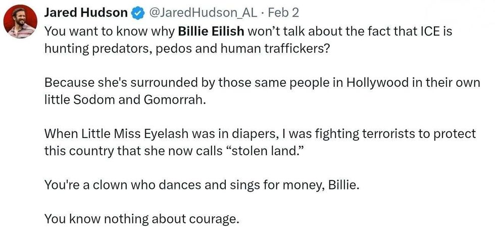 Among them was singer-songwriter Billie Eilish, who addressed atrocities committed by the administration of MAGA Republican President Donald Trump through Kristi Noem's Department of Homeland Security via her Customs and Border Protection (CBP) and Immigration and Customs Enforcement (ICE) employees.