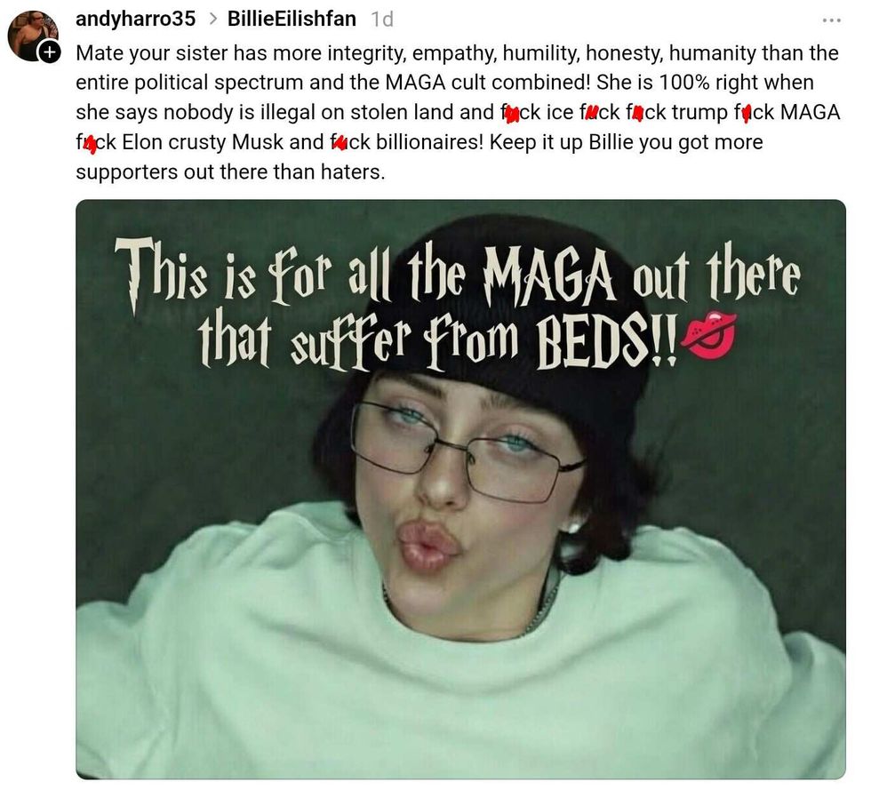 As expected, MAGA had a meltdown over being confronted with their own hypocrisy and began attacking Eilish.