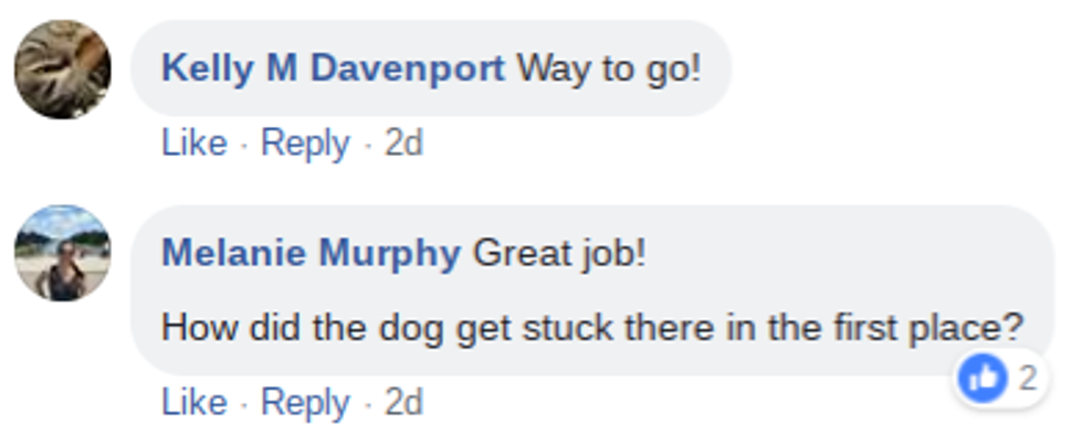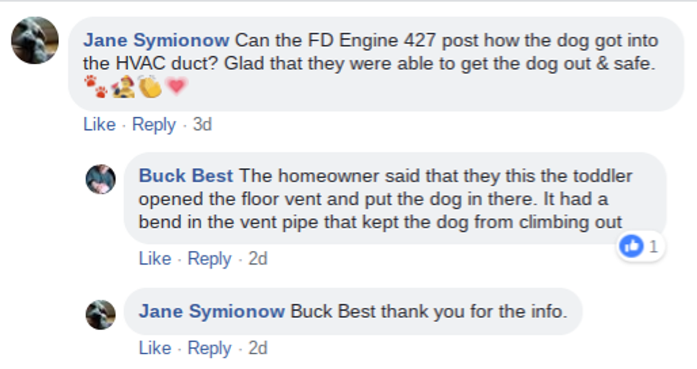 “The crew from Engine 427, West Springfield, responded to a ruff and far-fetched rescue last night. A small dog was trapped in an HVAC duct in a home."