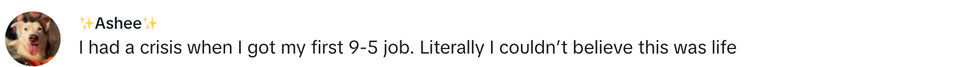 A woman on TikTok has gone viral after breaking down in tears upon realizing what life is like working a 9 to 5 job.