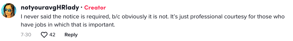 "I never said the notice is required, b/c obviously it is not. It's just professional courtesy for those who have jobs in which that is important."