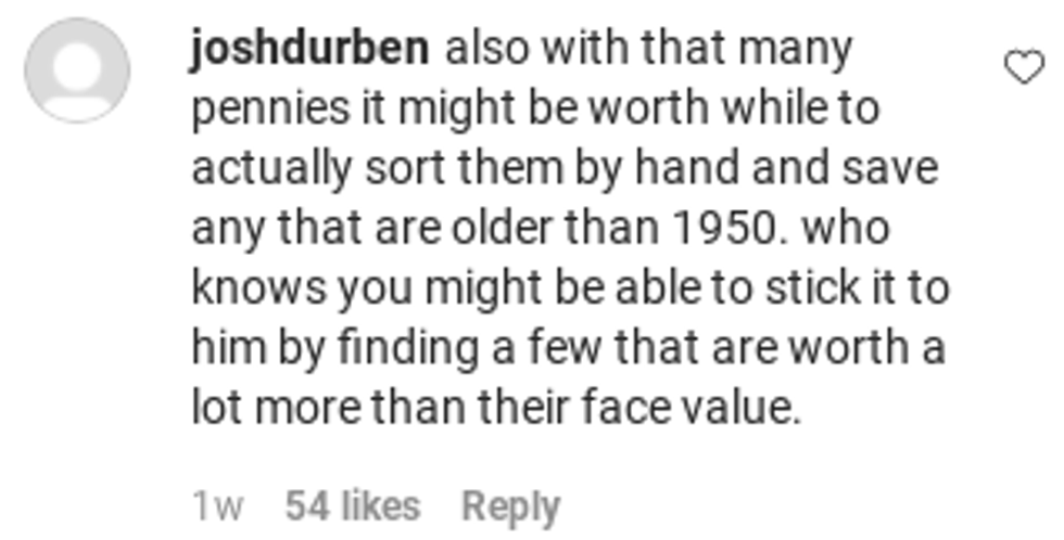 "I'm not sure what's worse... the fact that this man is so miserable, he can't accept an employee leaving because he's the biggest a**hole I've seriously ever met, or the fact that he went through THAT much effort to get $915 worth of HEAVYYY pennies just to say 'f**k you'. I mean....couldn't he have just p*ssed on the check or something?"
