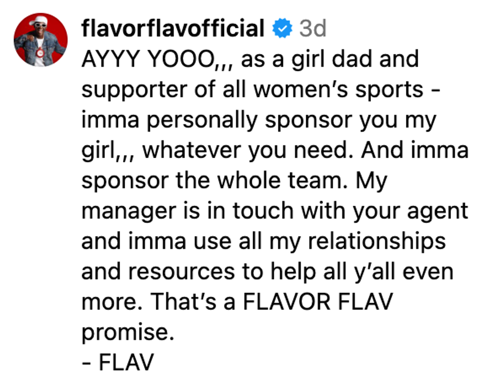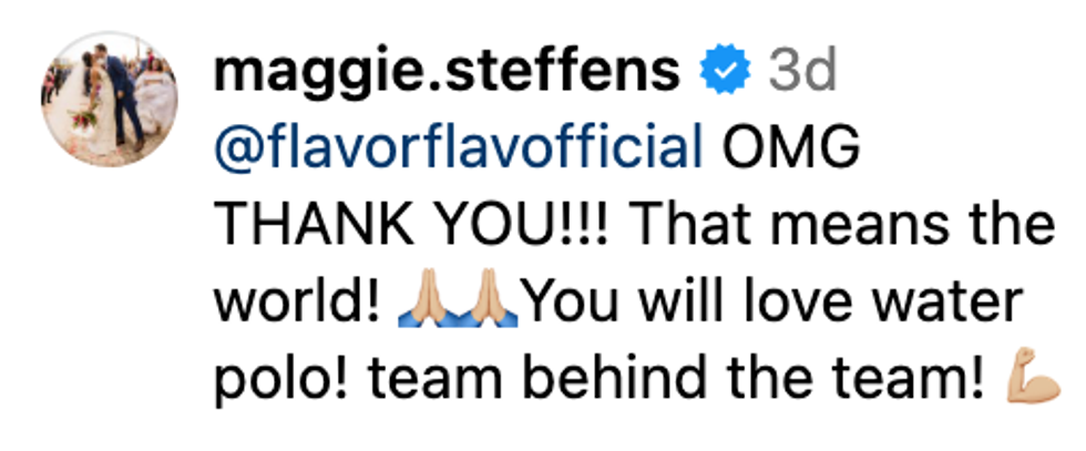 To both fans' and Steffens' shock, Flavor Flav showed up in the comments with full support, writing: