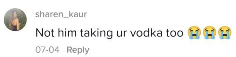 When Samantha awakes, her date is gone with his stuff and her bottle of vodka.