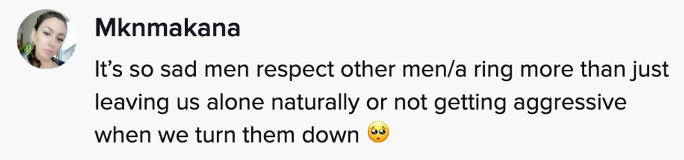 A flight attendant's clever ploy to ward off creeps by wearing a fake ring has gone viral.
