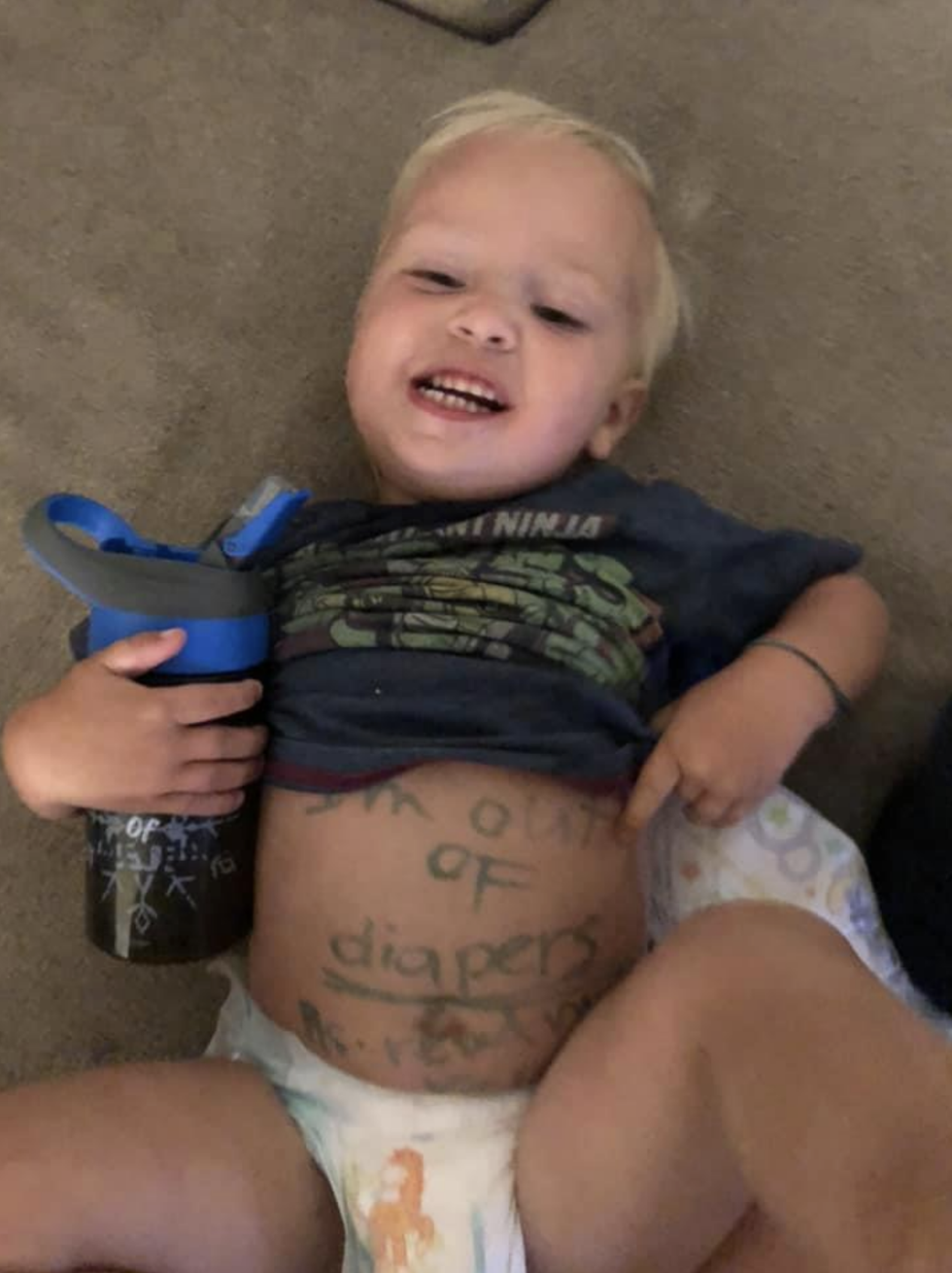 Heather Chisum, of Sanibel Island, Florida, noticed the message in ink on her 18-month-old son Milo's belly after picking him up from the Children's Education Center of the Islands.