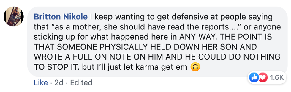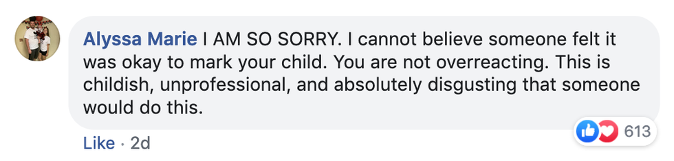 "I had plans to take them to the beach to play, and now I can't because my son has writing all over him."