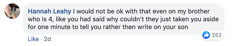 "Why a big long message needed to be written across my sons stomach is beyond me."